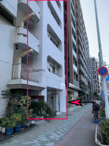 ファミリーマートの2つ隣の「ホワイトレジデンス」ビル2階。入り口に置いてある「武心会」のボードが目印です!